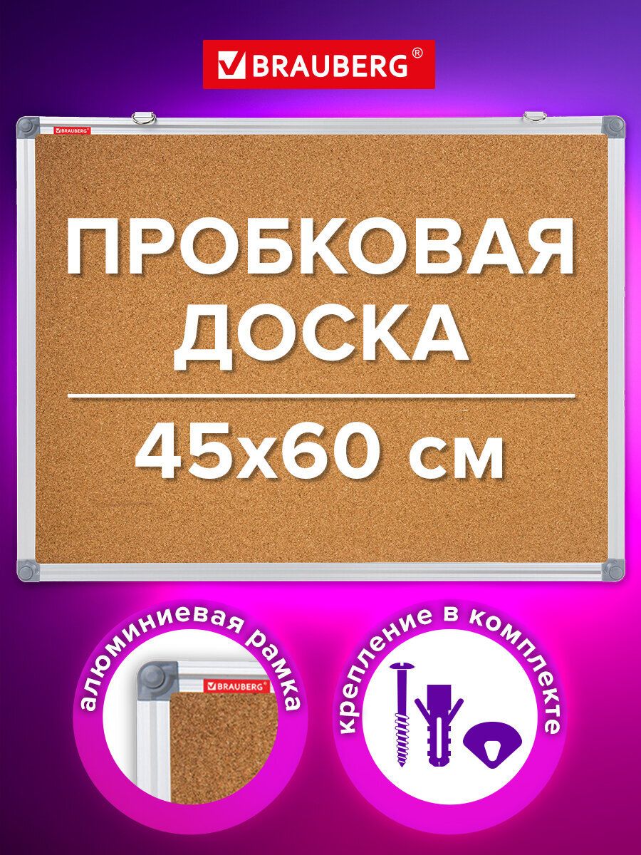 Доска пробковая информационная на стену 45х60 см для объявлений, заметок, записей и фото, алюминиевая рамка, Brauberg Extra