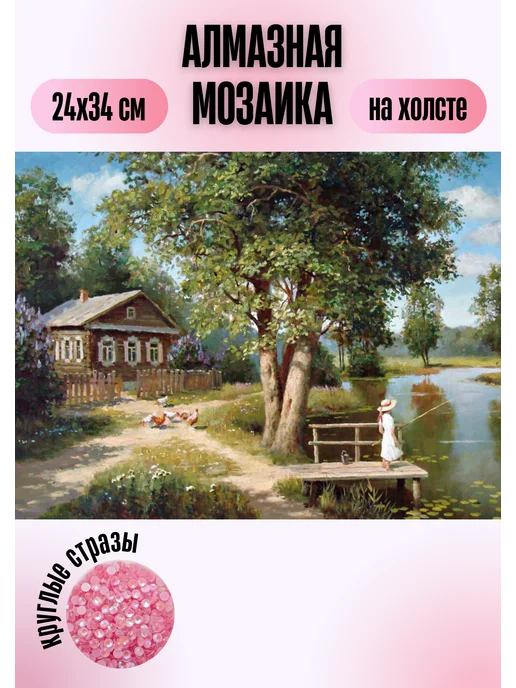 Алмазная мозаика стразами пейзаж деревня 30х40 см