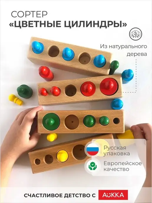 Цилиндры Монтессори. Обучающий сортер для малышей