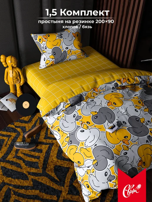 Постельное белье 1.5 на резинке хлопок 200х90 Кряксы