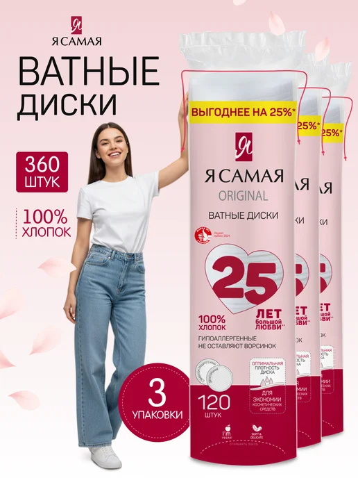 Ватные диски 360 шт с веревочкой (3уп по 120шт)