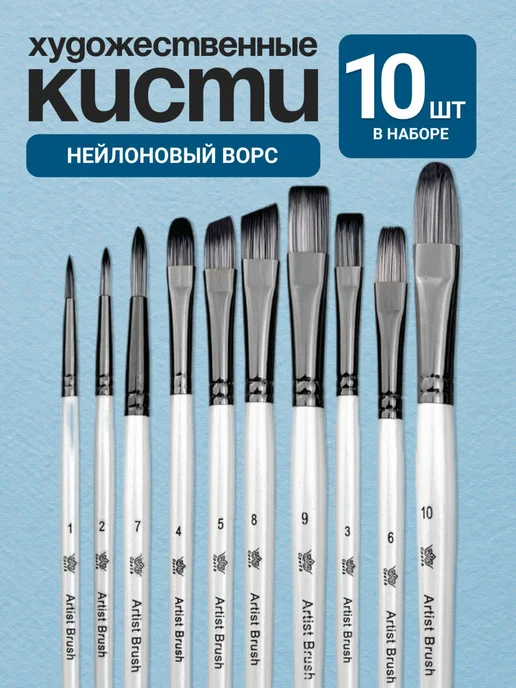 Кисти для рисования акрилом, гуашью, акварелью набор