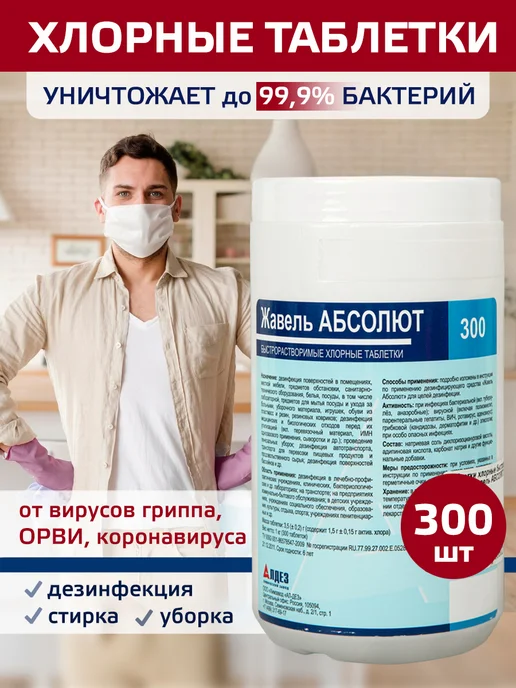 Хлорные таблетки Жавель для дезинфекции, 300 шт