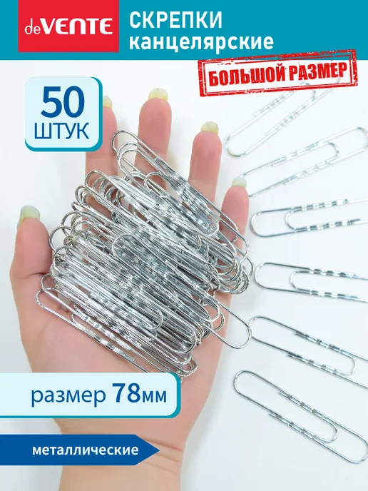 Скрепки канцелярские большие оцинкованные для офиса 50 шт