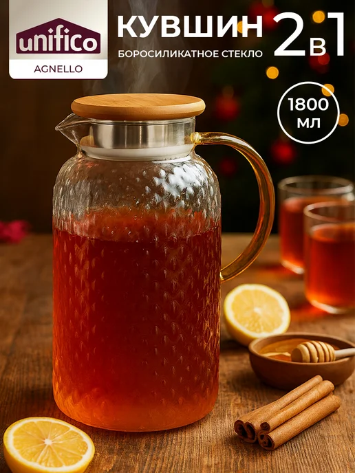 Стеклянный кувшин для воды с крышкой 1800 мл Agnello