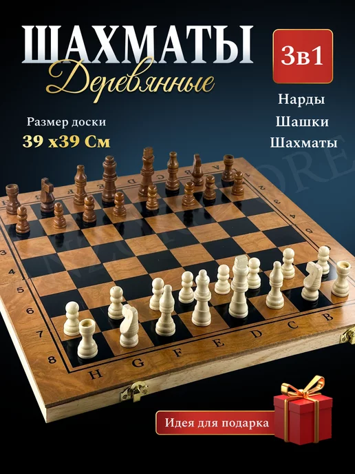 Шашки шахматы нарды 3 в 1, деревянная настольная игра
